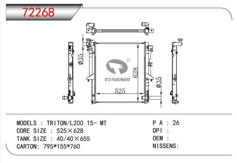 適用于奇瑞瑞虎(新款) MT散熱器 OEM : F1301000B1