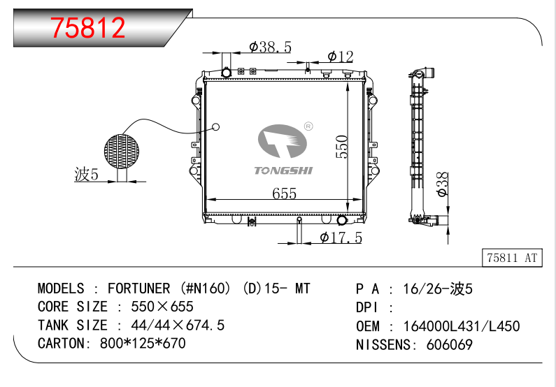 適用于奇瑞瑞虎(新款) MT散熱器 OEM : F1301000B1