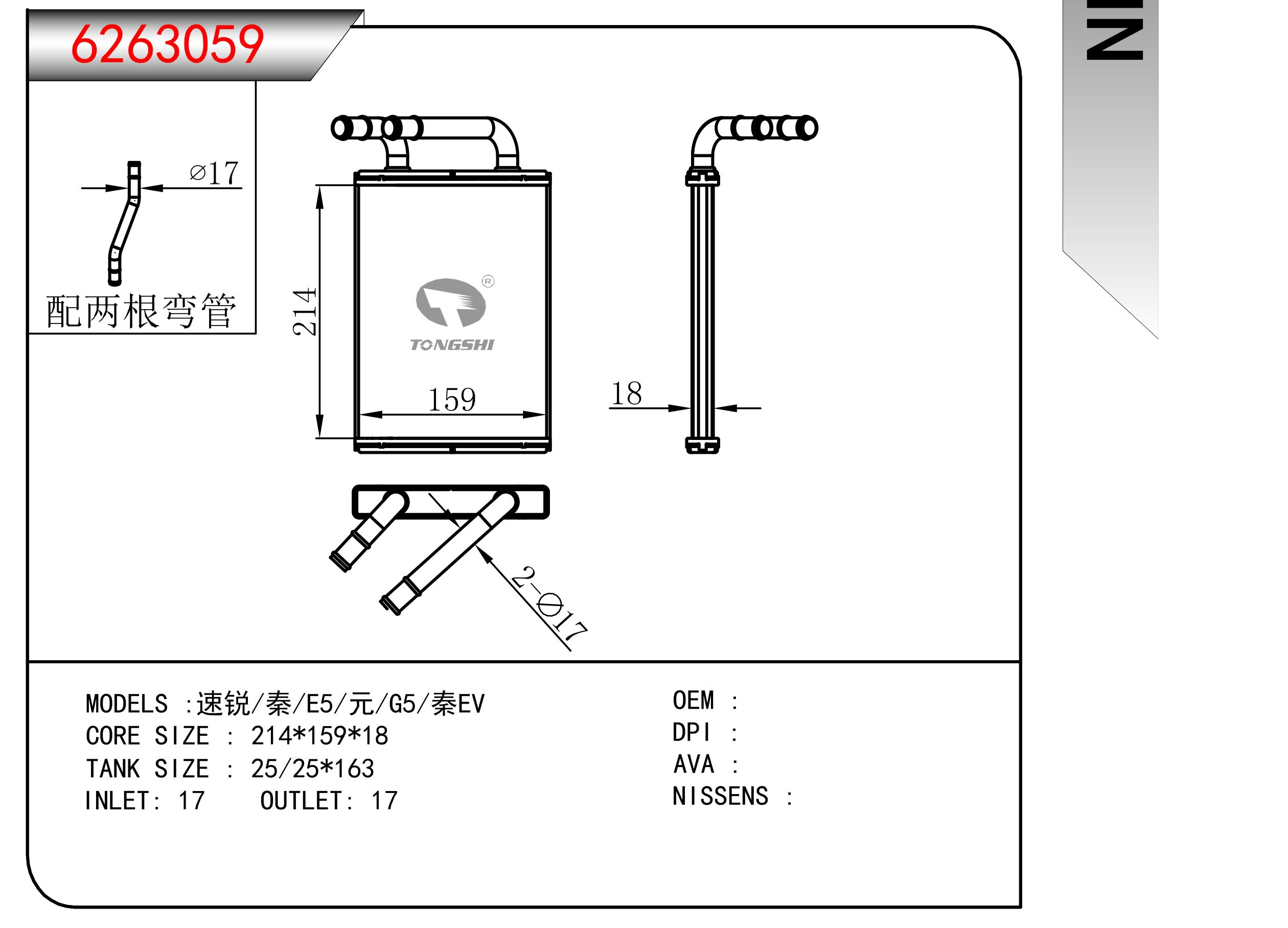 適用于奇瑞瑞虎(新款) MT散熱器 OEM : F1301000B1