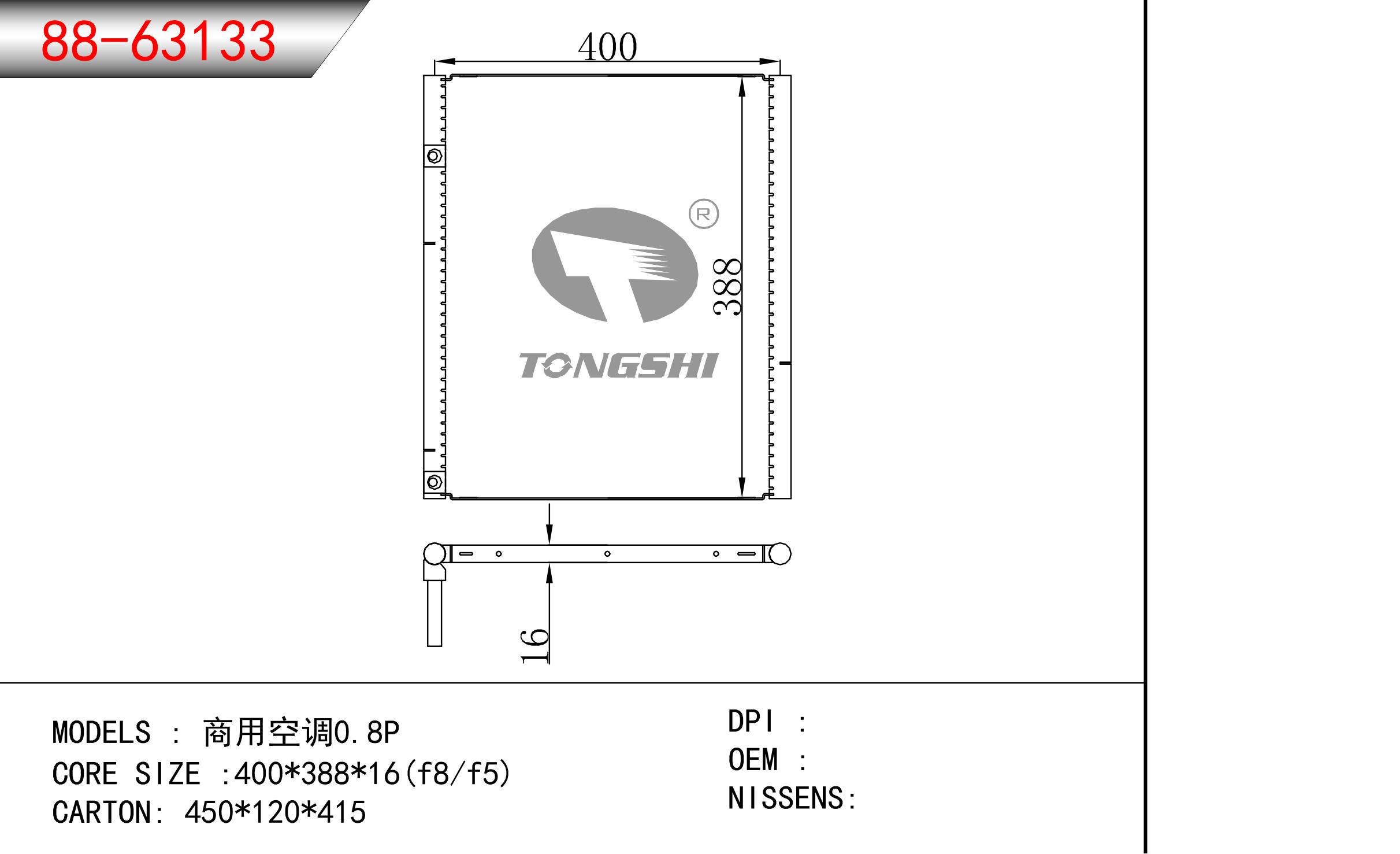 適用于奇瑞瑞虎(新款) MT散熱器 OEM : F1301000B1