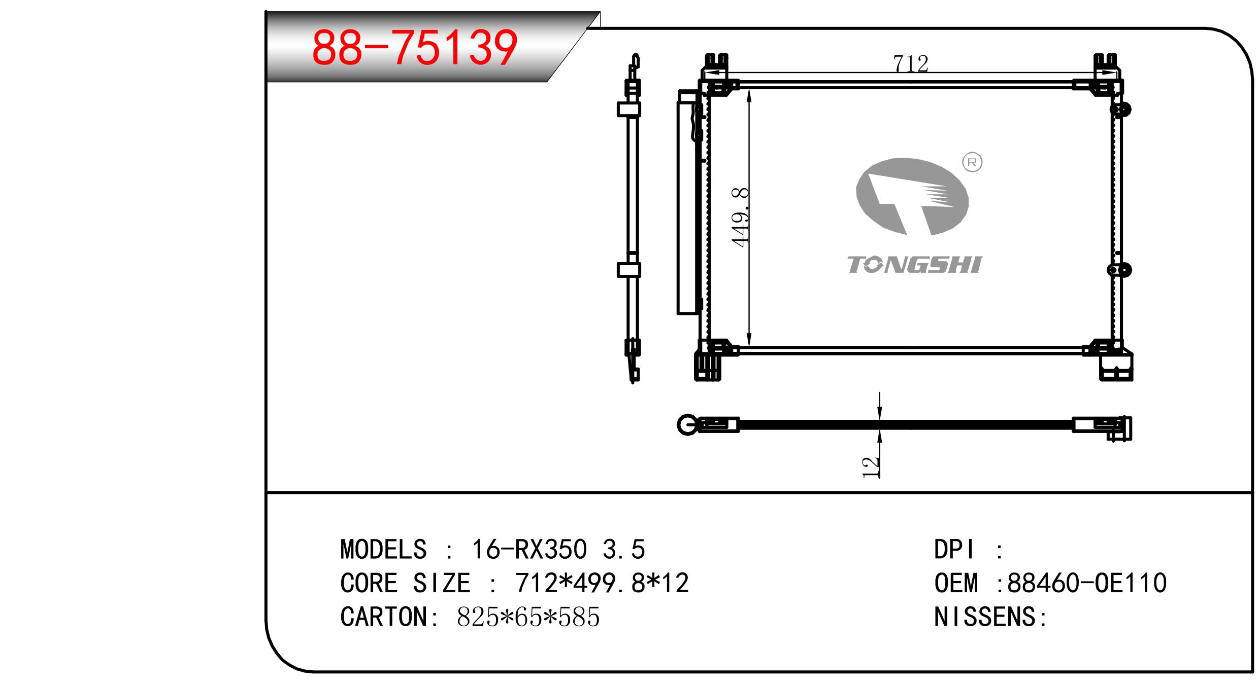 適用于奇瑞瑞虎(新款) MT散熱器 OEM : F1301000B1