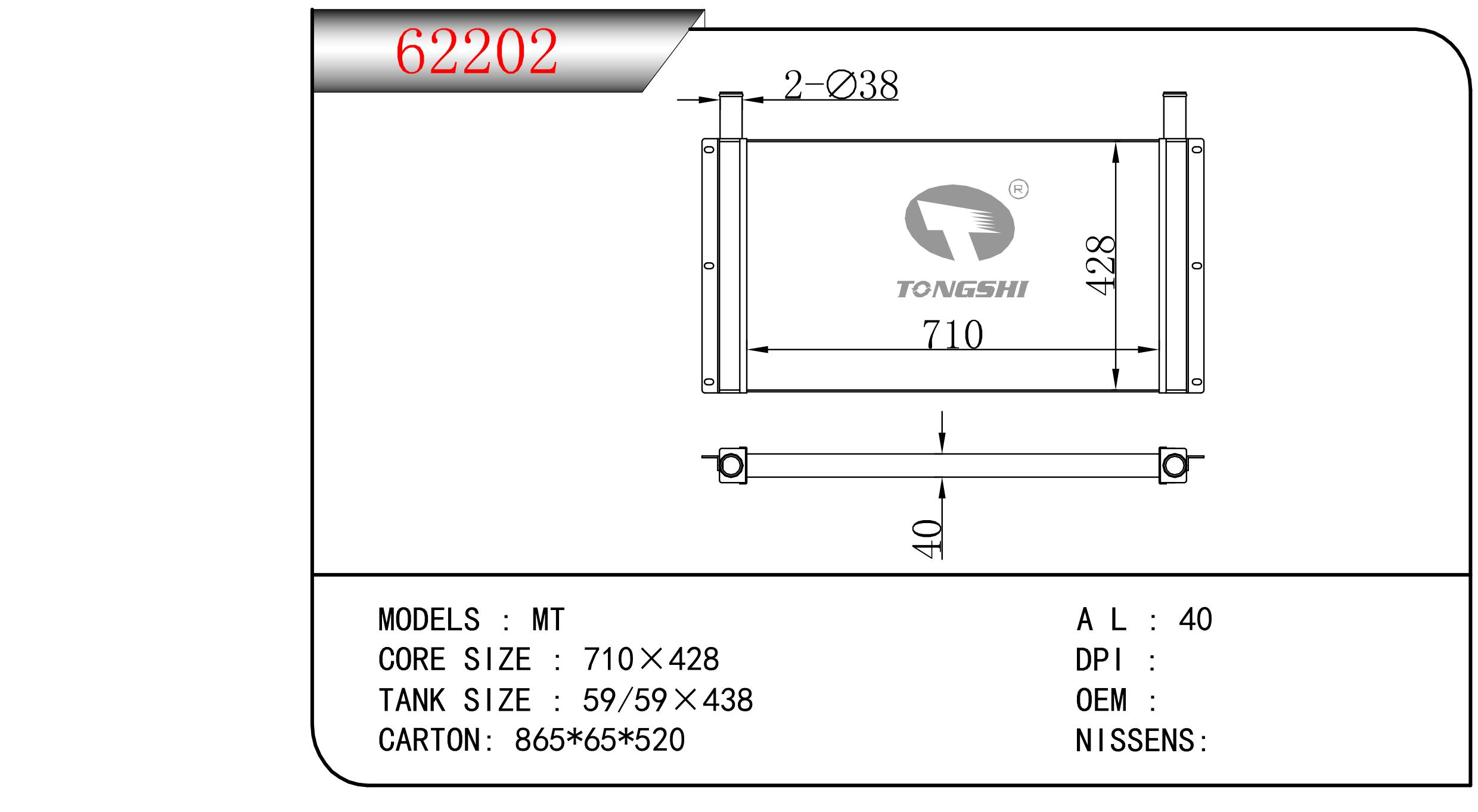 適用于奇瑞瑞虎(新款) MT散熱器 OEM : F1301000B1