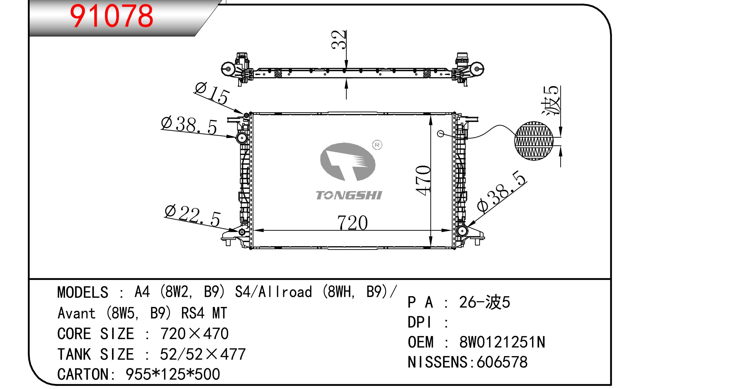 適用于寶馬 E30 320 i 82-93 AT散熱器OEM:1723 825/1719 261