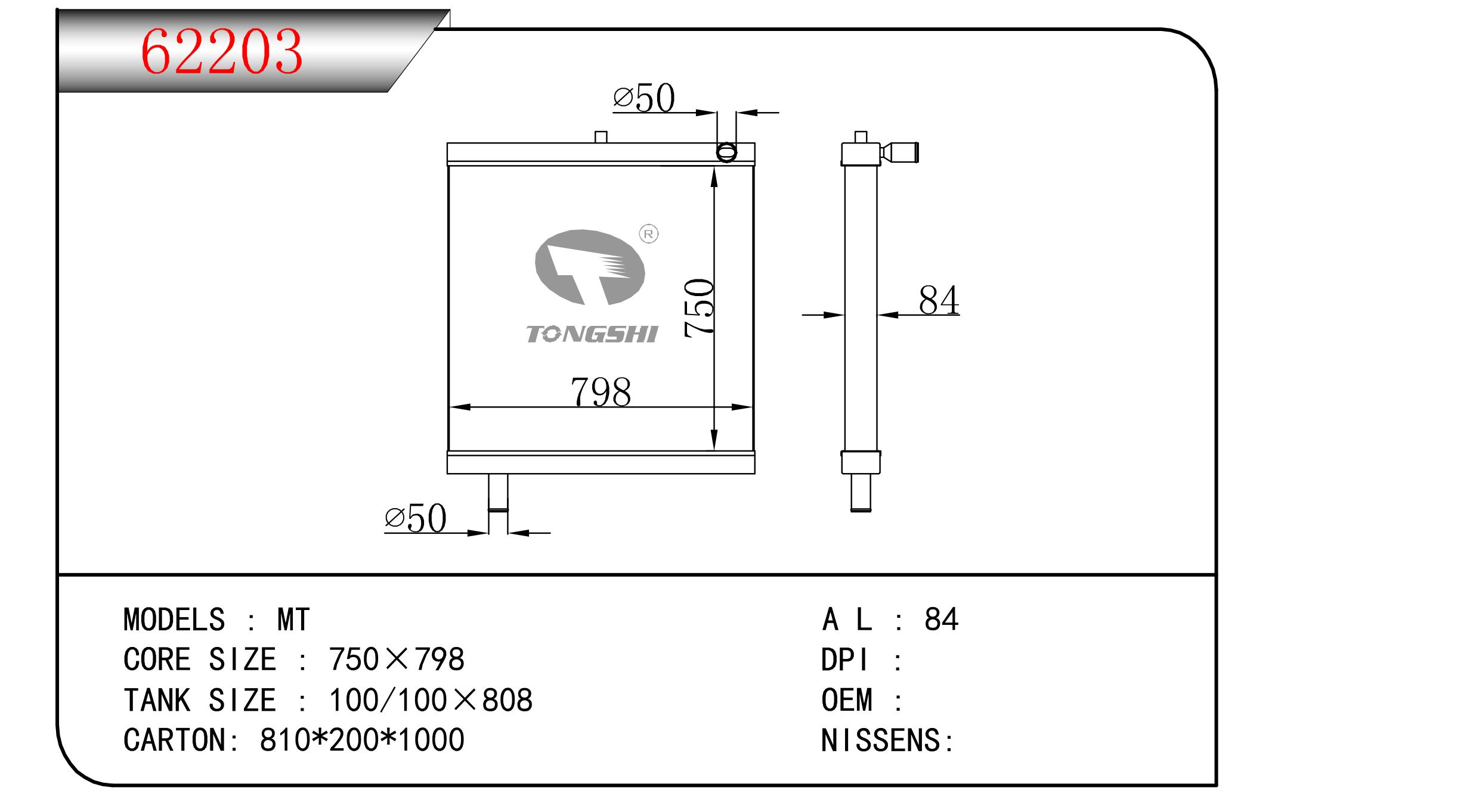 適用于奇瑞瑞虎(新款) MT散熱器 OEM : F1301000B1