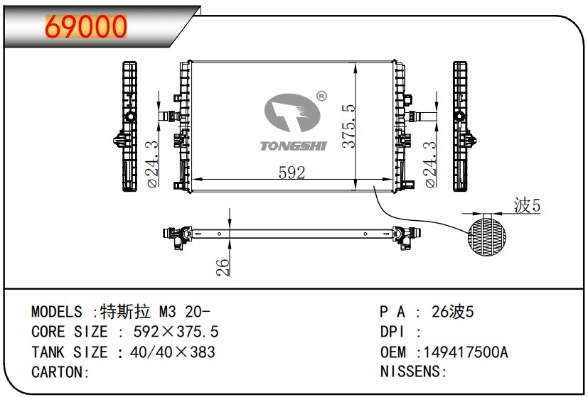 適用于奇瑞瑞虎(新款) MT散熱器 OEM : F1301000B1