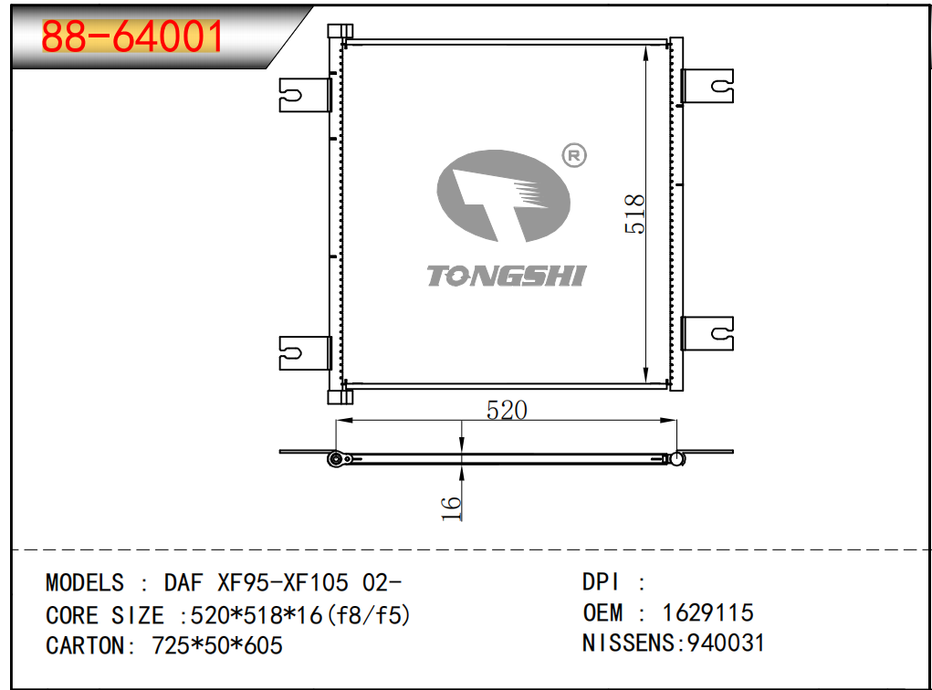 適用于奇瑞瑞虎(新款) MT散熱器 OEM : F1301000B1