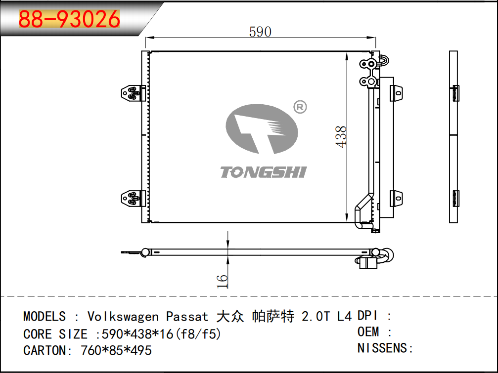 適用于沃爾沃V40 1.9TD D4192T 95- MT散熱器