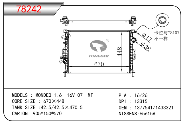 適用于奇瑞瑞虎(新款) MT散熱器 OEM : F1301000B1