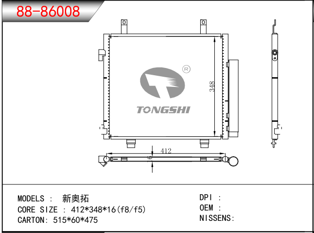 適用于奇瑞瑞虎(新款) MT散熱器 OEM : F1301000B1