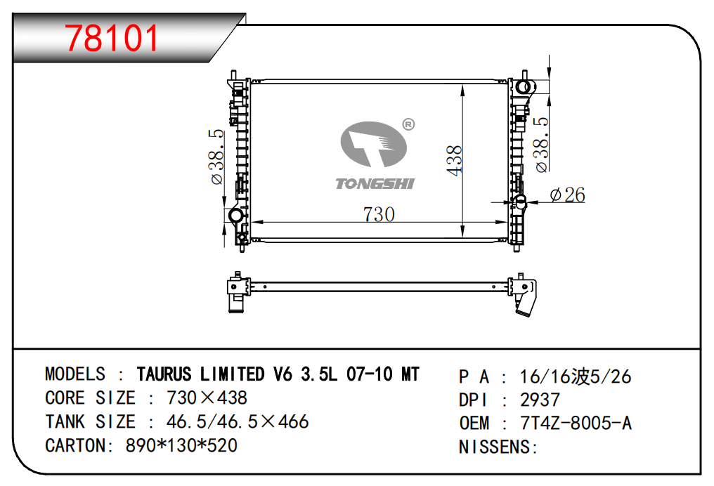 適用于奇瑞瑞虎(新款) MT散熱器 OEM : F1301000B1