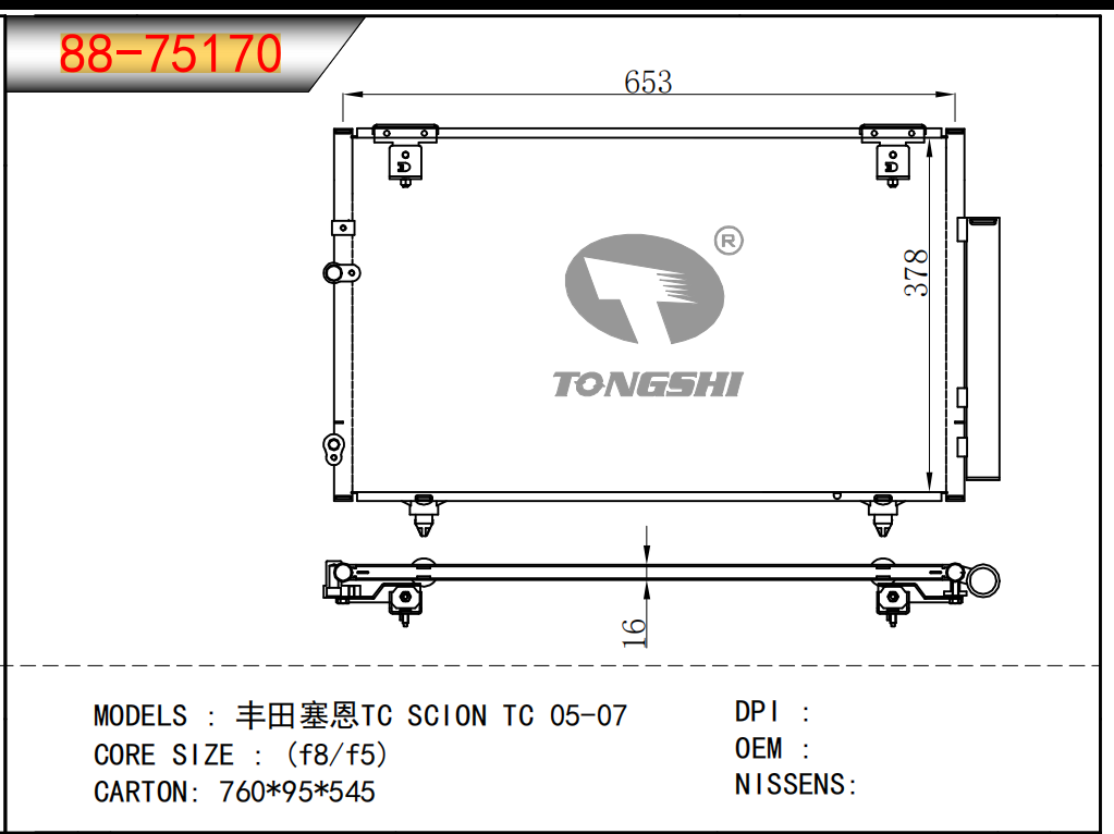 適用于奇瑞瑞虎(新款) MT散熱器 OEM : F1301000B1