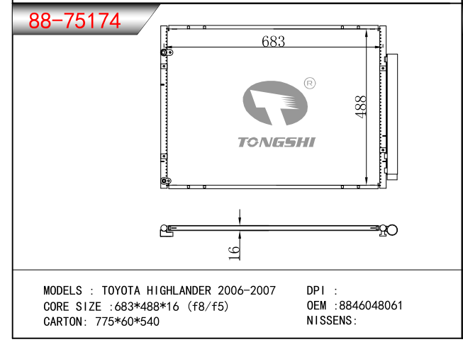 適用于奇瑞瑞虎(新款) MT散熱器 OEM : F1301000B1