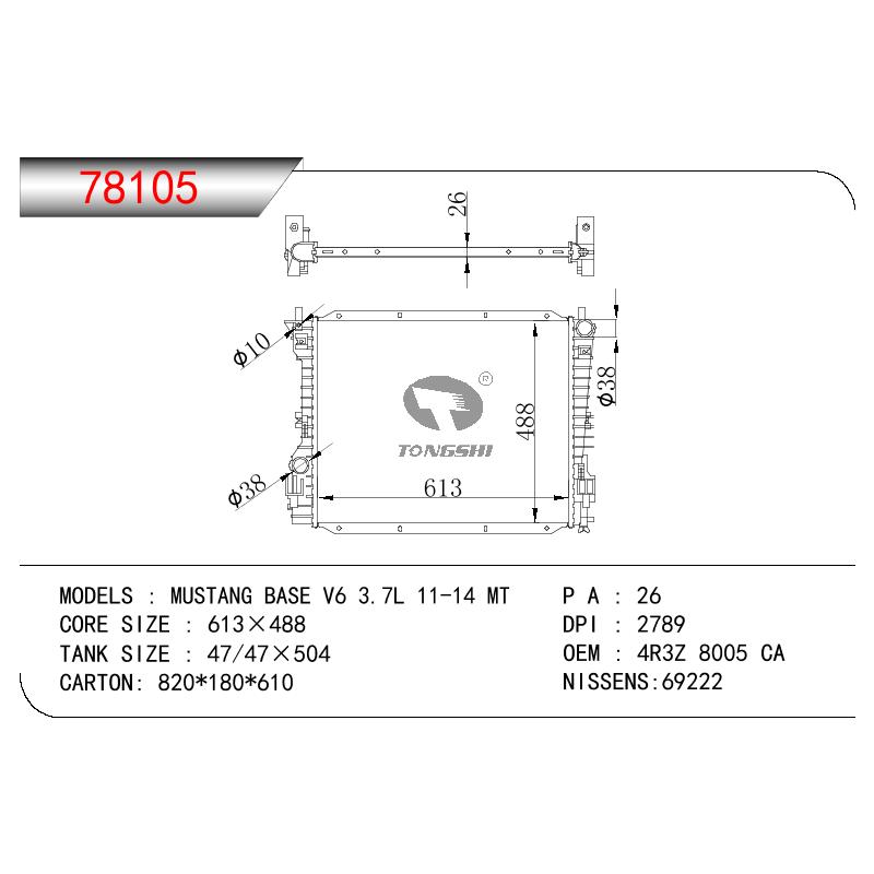 適用于奇瑞瑞虎(新款) MT散熱器 OEM : F1301000B1