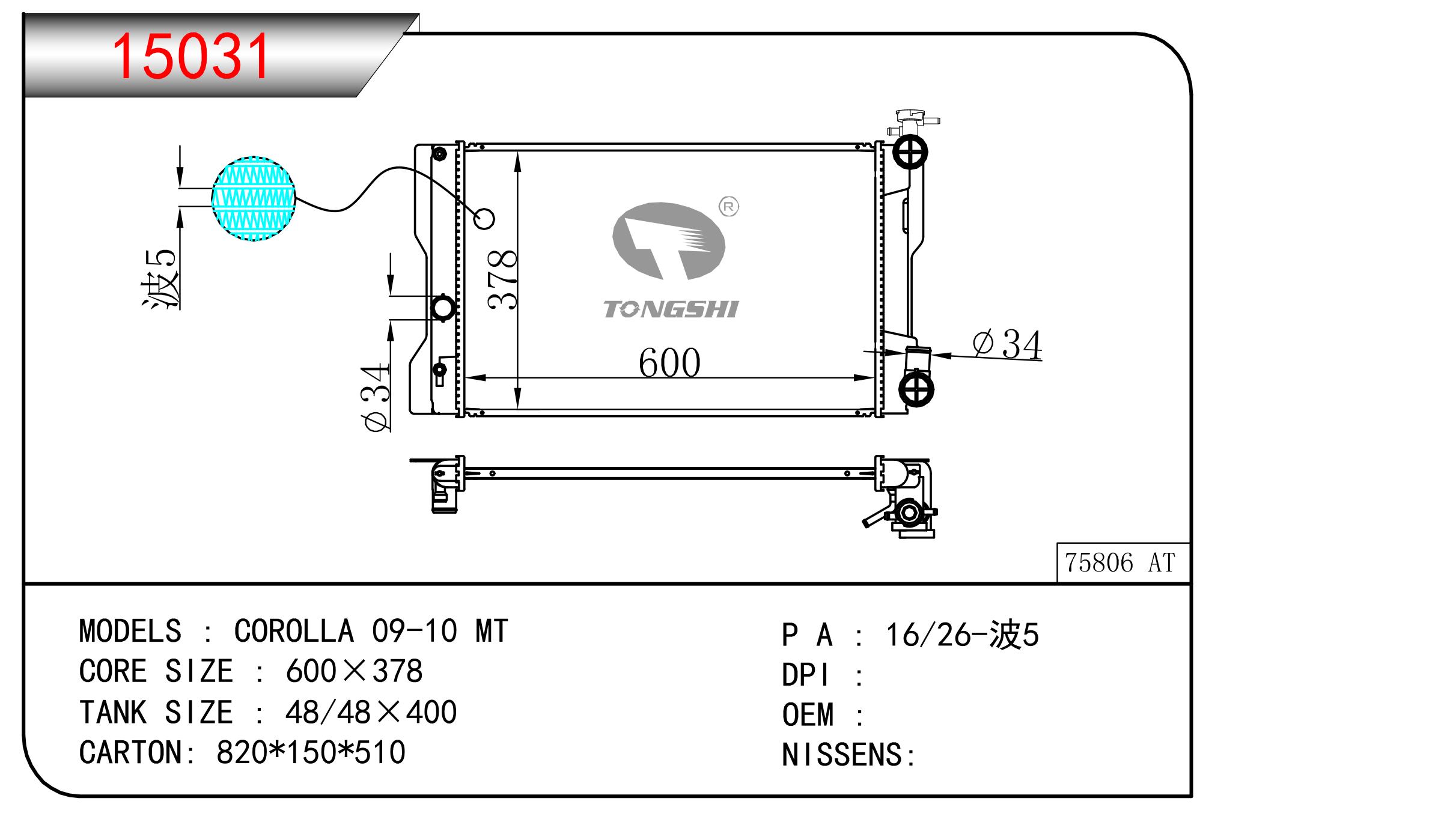 適用于奇瑞瑞虎(新款) MT散熱器 OEM : F1301000B1