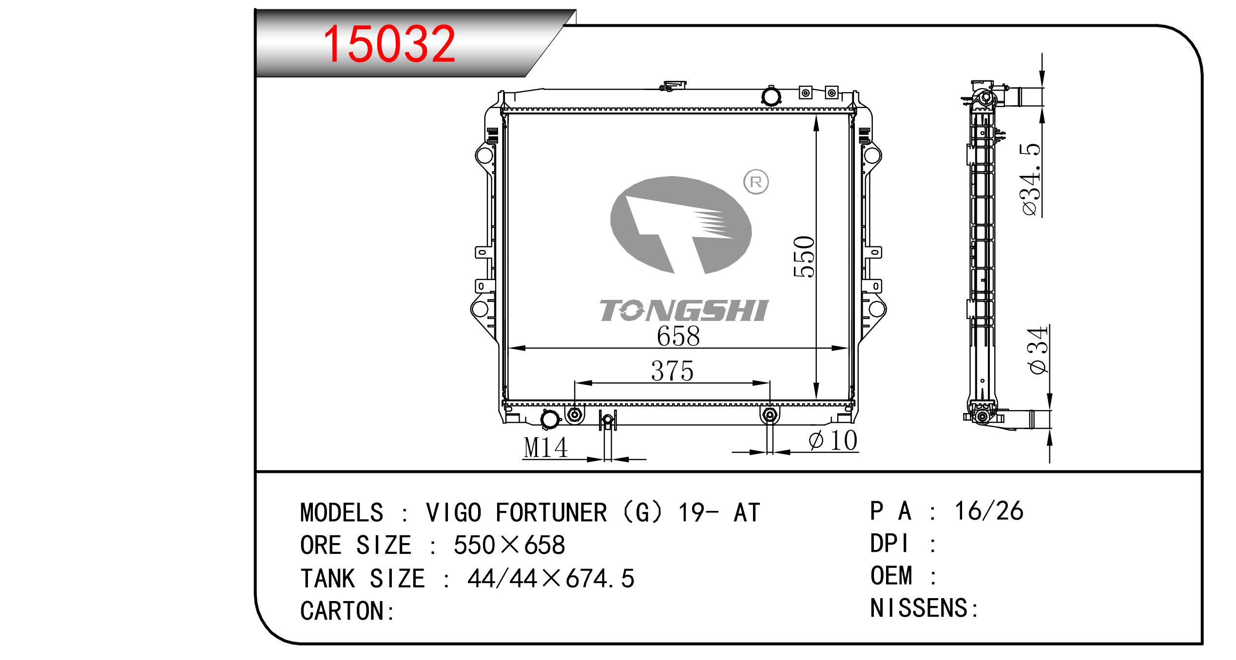 適用于奇瑞瑞虎(新款) MT散熱器 OEM : F1301000B1