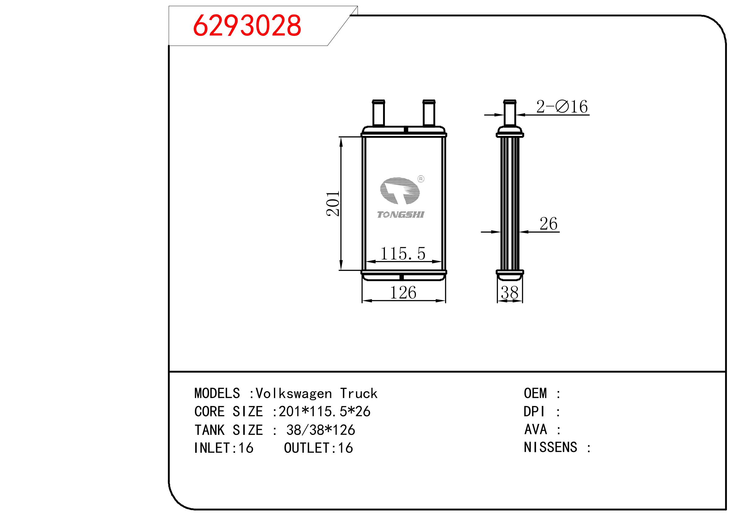 適用于奇瑞瑞虎(新款) MT散熱器 OEM : F1301000B1