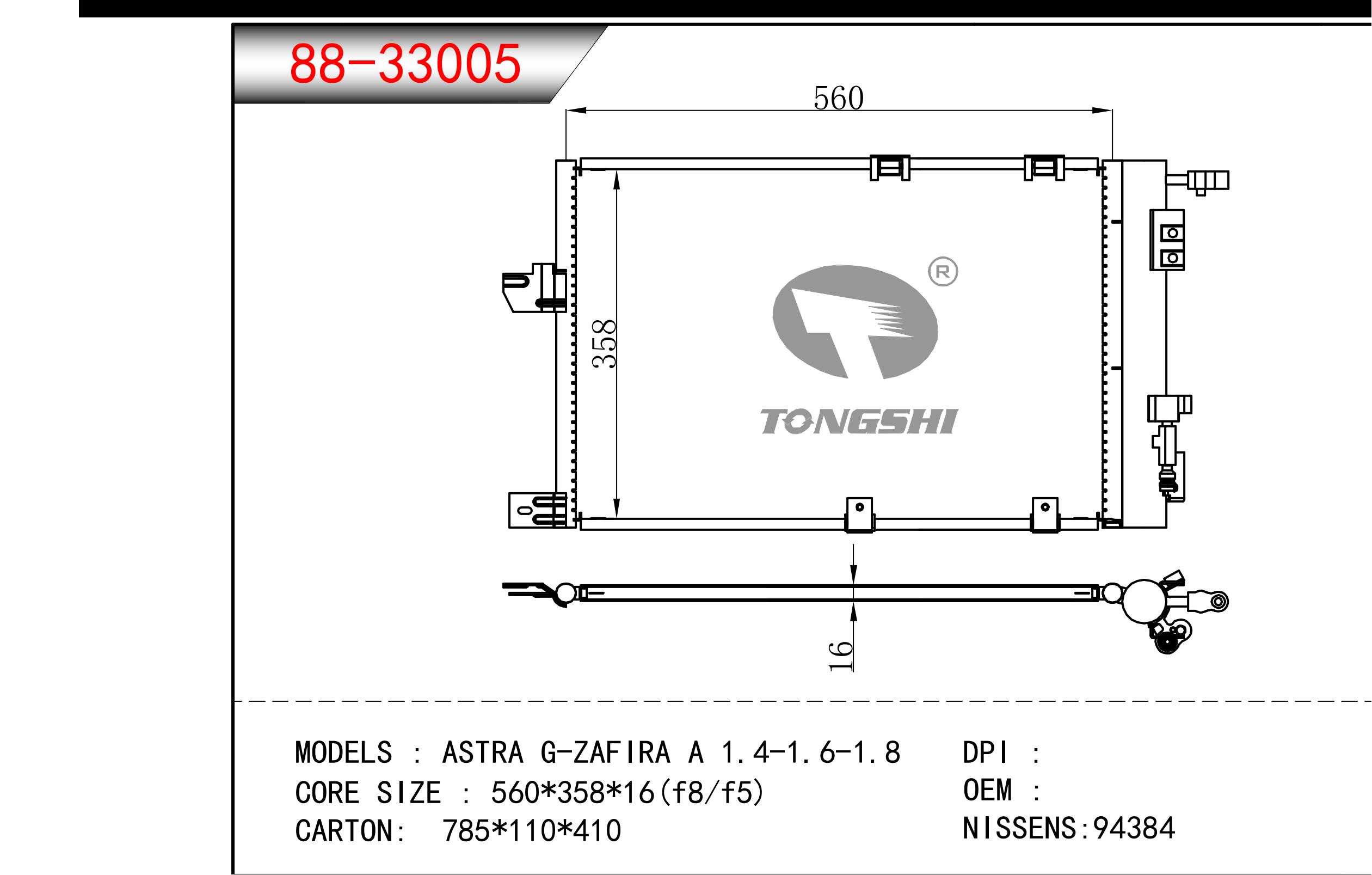 適用于奇瑞瑞虎(新款) MT散熱器 OEM : F1301000B1