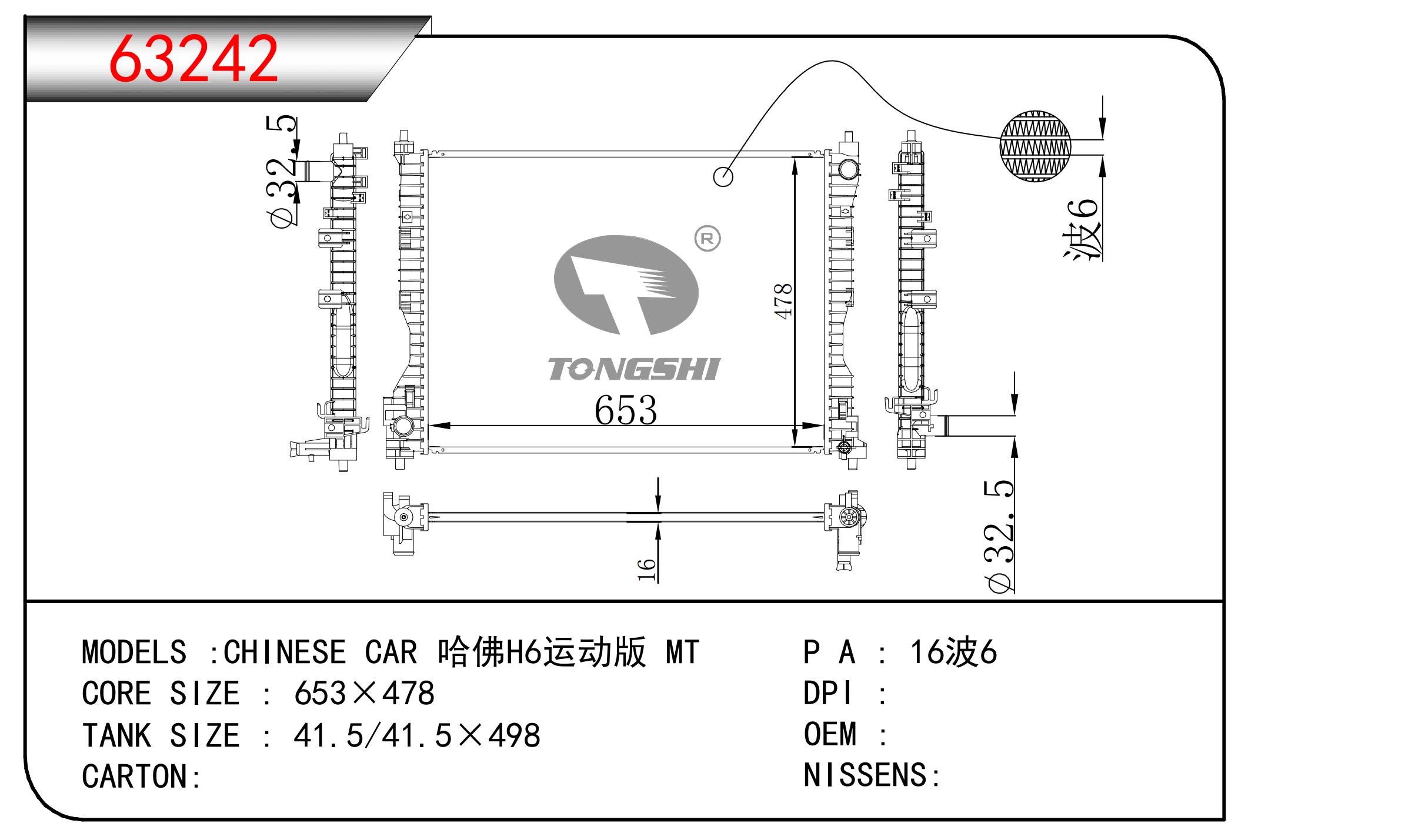 適用于奇瑞瑞虎(新款) MT散熱器 OEM : F1301000B1