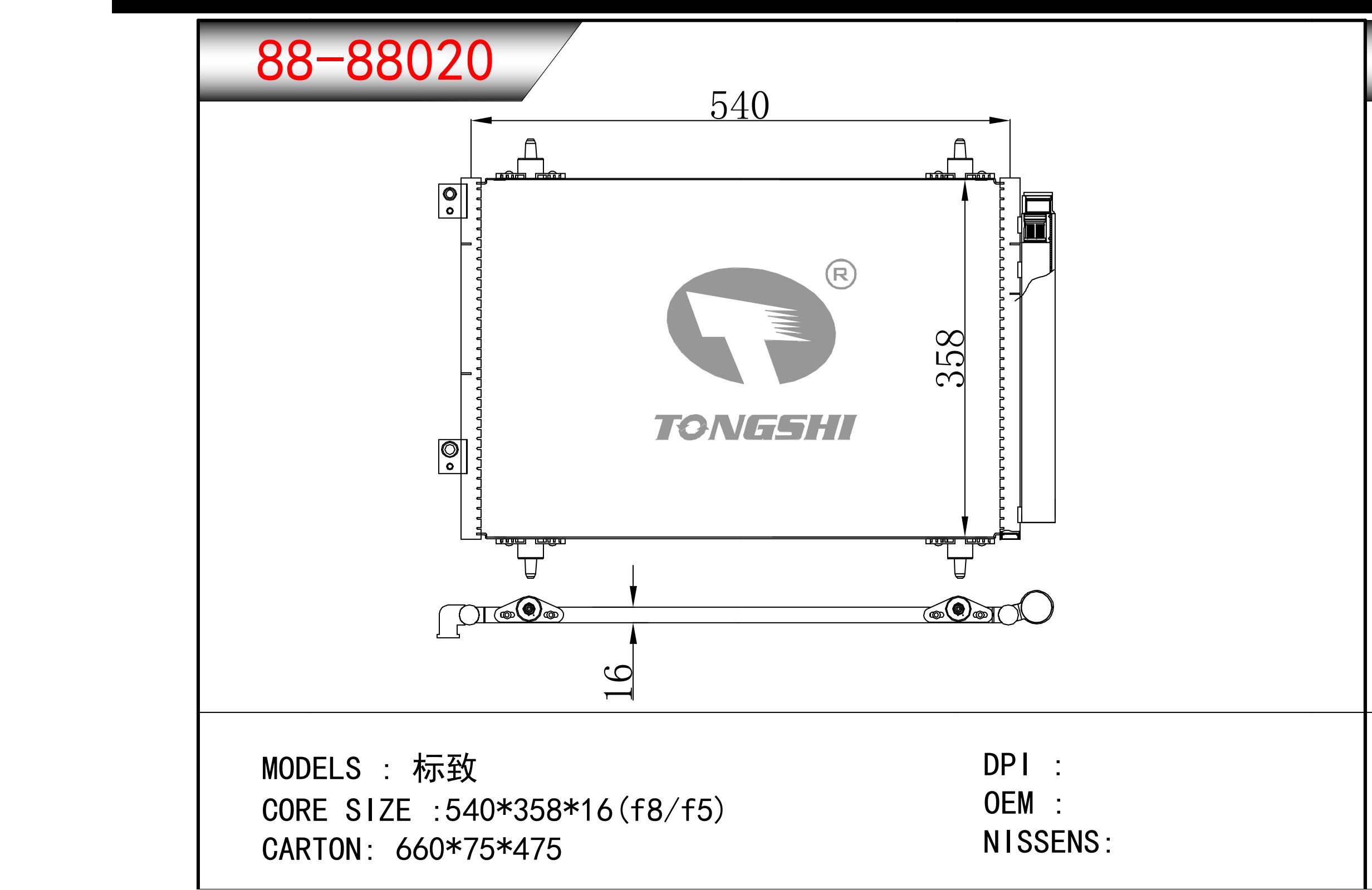適用于奇瑞瑞虎(新款) MT散熱器 OEM : F1301000B1