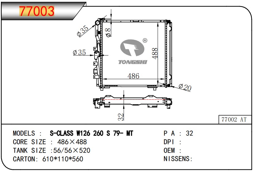適用于寶馬 E30 320 i 82-93 AT散熱器OEM:1723 825/1719 261