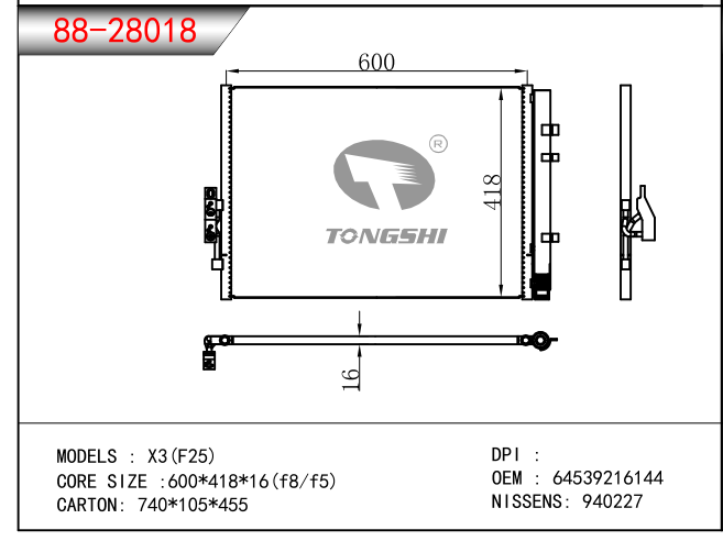 適用于寶馬 E30 320 i 82-93 AT散熱器OEM:1723 825/1719 261