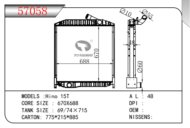 適用于奇瑞瑞虎(新款) MT散熱器 OEM : F1301000B1