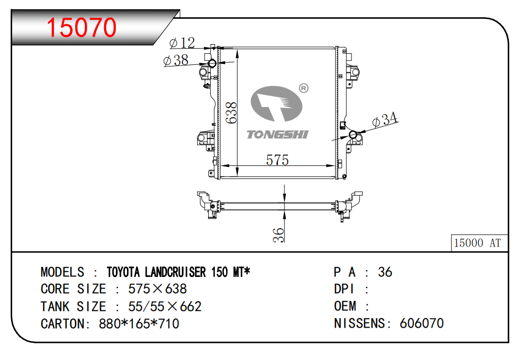 適用于奇瑞瑞虎(新款) MT散熱器 OEM : F1301000B1