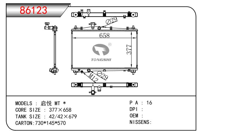 適用于奇瑞瑞虎(新款) MT散熱器 OEM : F1301000B1