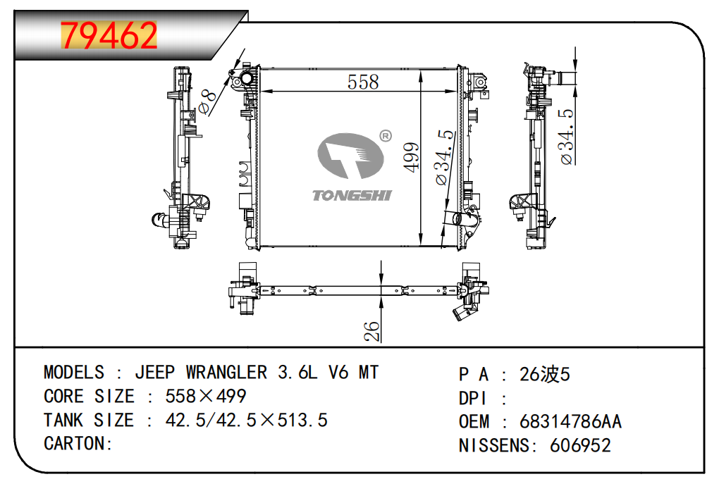 適用于奇瑞瑞虎(新款) MT散熱器 OEM : F1301000B1