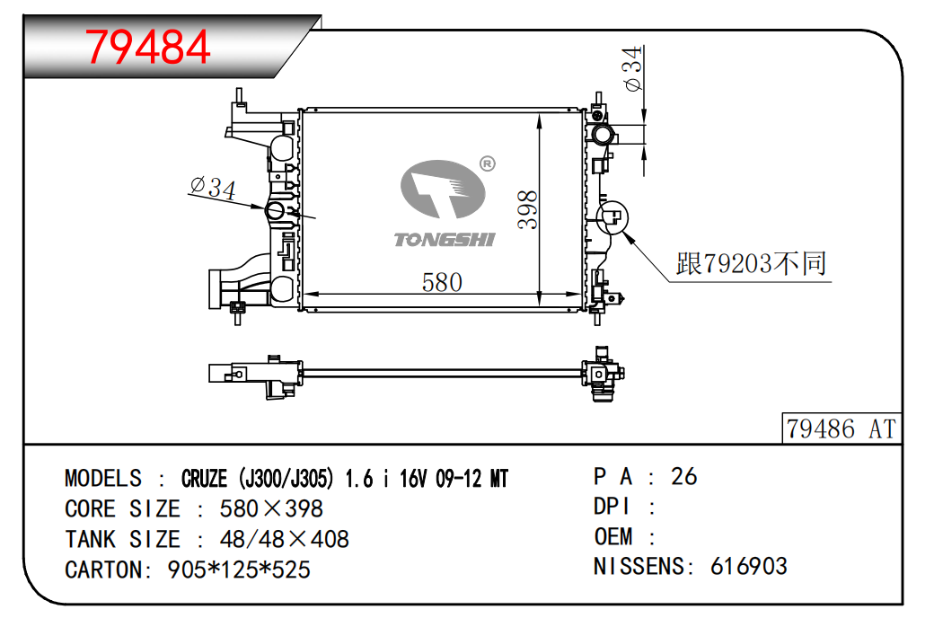 適用于奇瑞瑞虎(新款) MT散熱器 OEM : F1301000B1