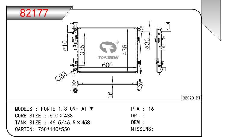 適用于奇瑞瑞虎(新款) MT散熱器 OEM : F1301000B1