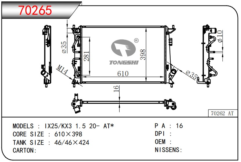 適用于奇瑞瑞虎(新款) MT散熱器 OEM : F1301000B1