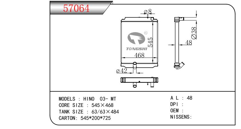 適用于奇瑞瑞虎(新款) MT散熱器 OEM : F1301000B1