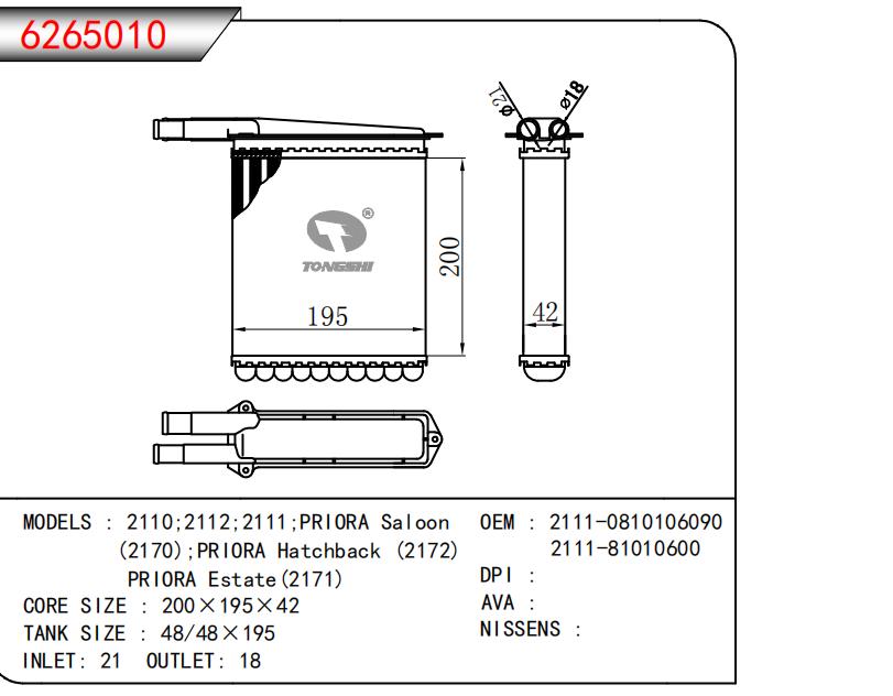 適用于2110;2112;2111;PRIORA Saloon(2170);PRIORA Hatchback (2172)PRIORA Estate(2171) OEM:2111-0810106090,2111-81010600