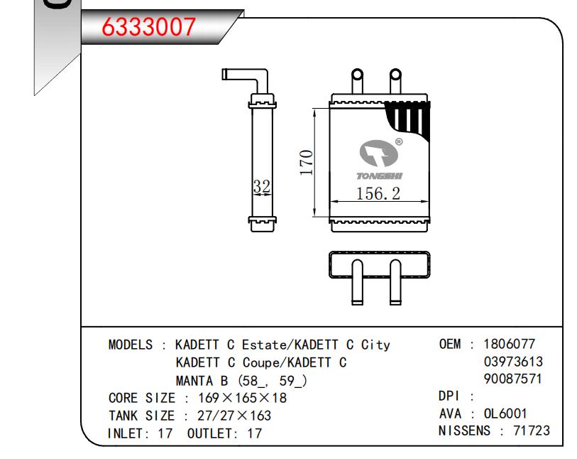 適用于KADETT C Estate/KADETT C CityKADETT C Coupe/KADETT CMANTA B(58,59_) OEM:1806077,03973613,90087571