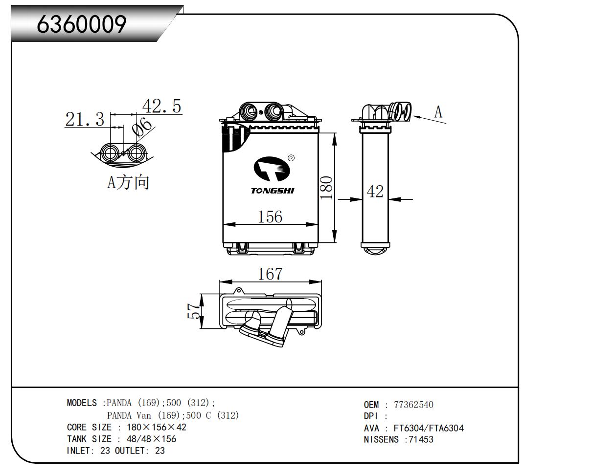 適用于奇瑞瑞虎(新款) MT散熱器 OEM : F1301000B1