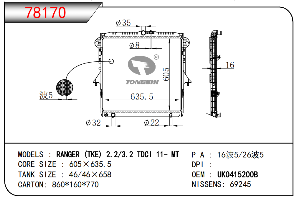 適用于奇瑞瑞虎(新款) MT散熱器 OEM : F1301000B1