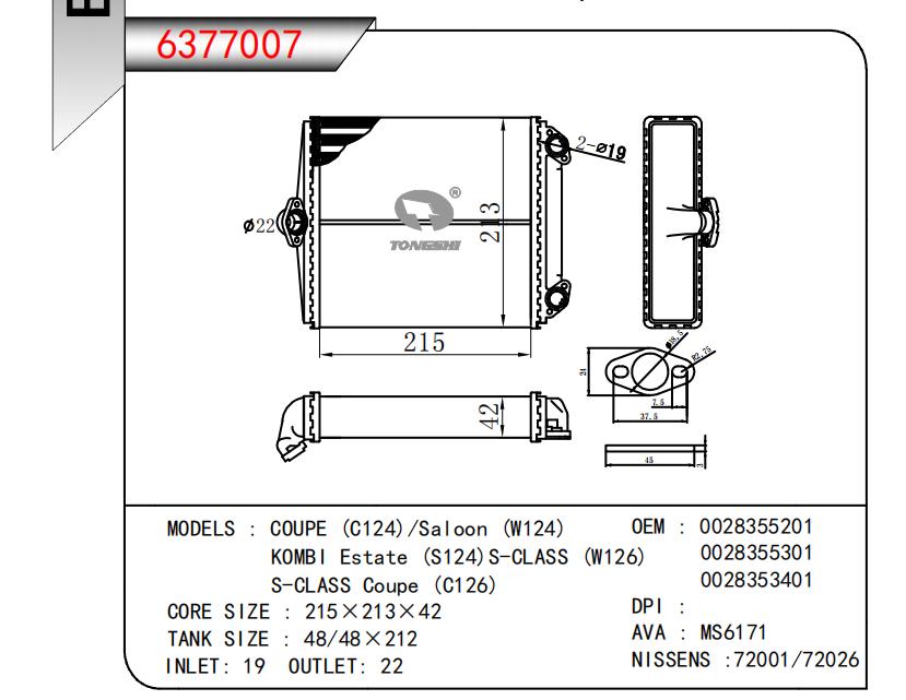 適用于COUPE (C124)/Saloon (W124)KOMBI Estate (S124)S-CLASS(W126)S-CLASS Coupe(C126) OEM:0028355201,0028355301,0028353401