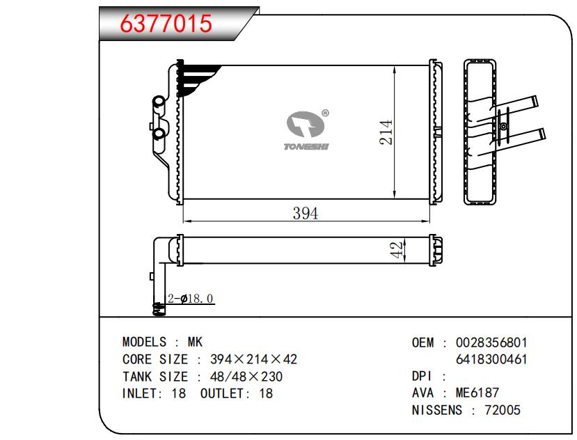 適用于奇瑞瑞虎(新款) MT散熱器 OEM : F1301000B1