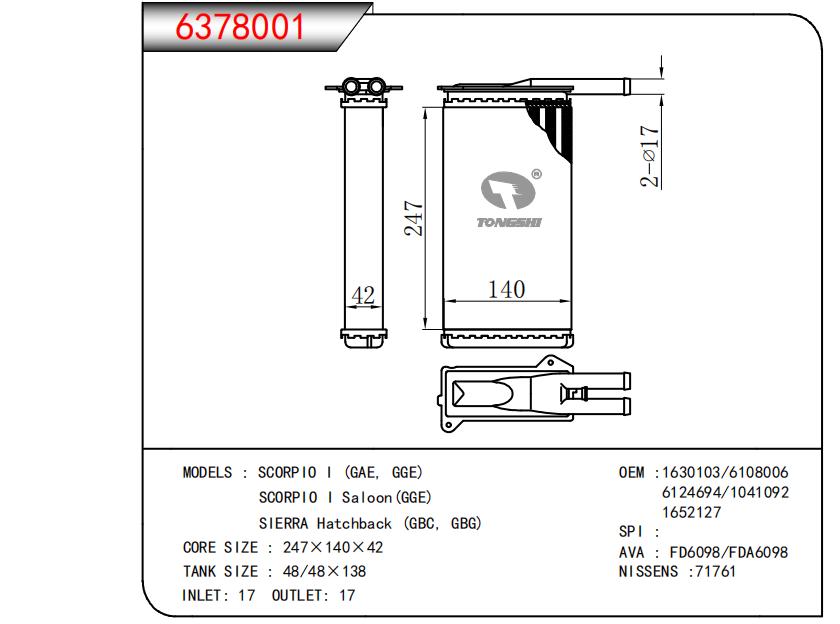 適用于SCORPI0 I (GAE,GGE)SCORPI0 I Saloon (GGE)SIERRA Hatchback (GBC,GBG) OEM::1630103,61080066124694,10410921652127