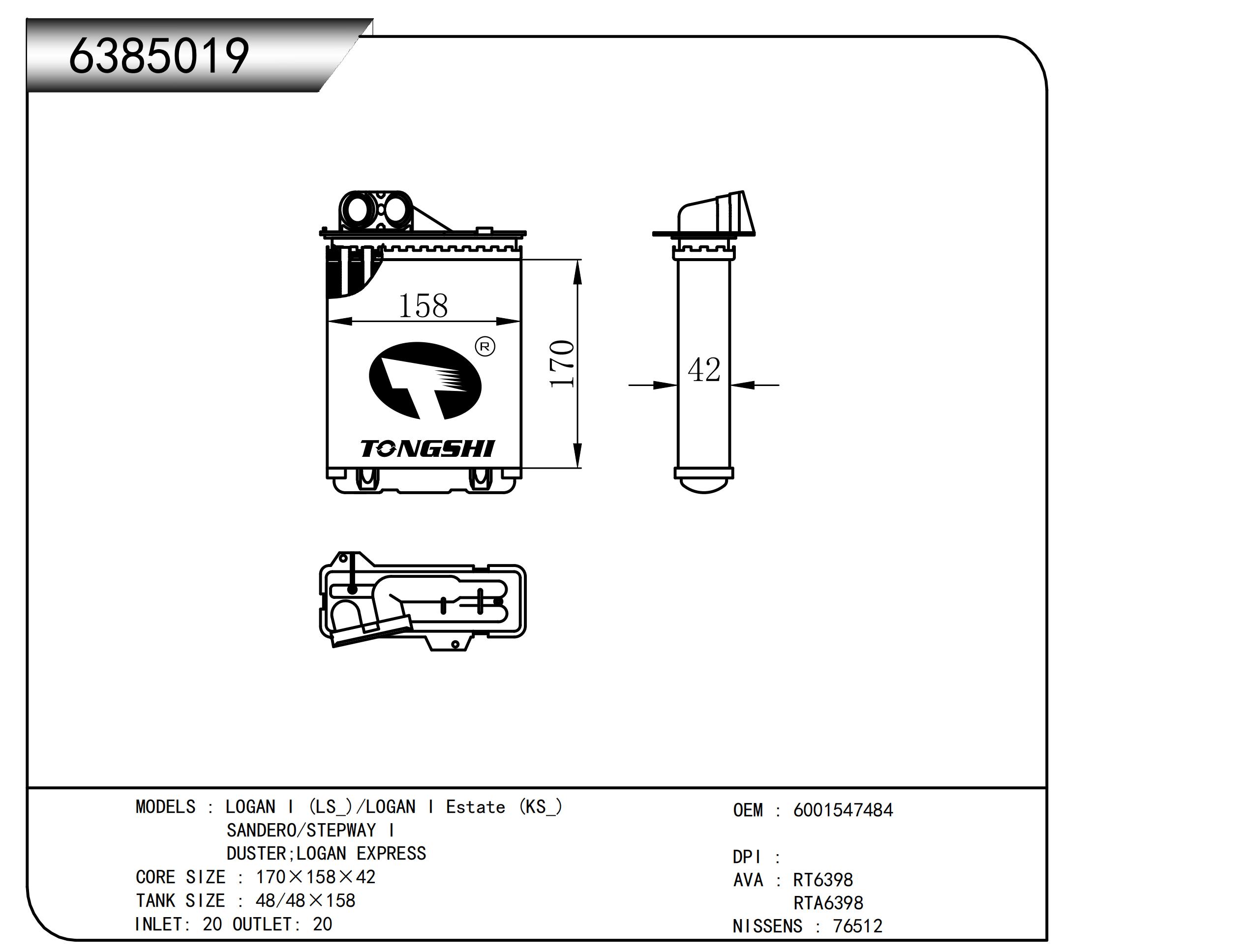 適用于LOGAN I (LS)/LOGAN I Estate (KS )SANDERO/STEPWAY IDUSTER:LOGAN EXPRESS