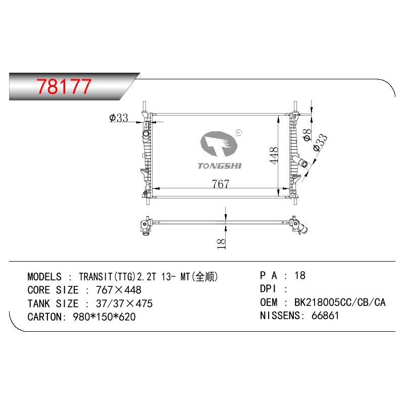 適用于奇瑞瑞虎(新款) MT散熱器 OEM : F1301000B1