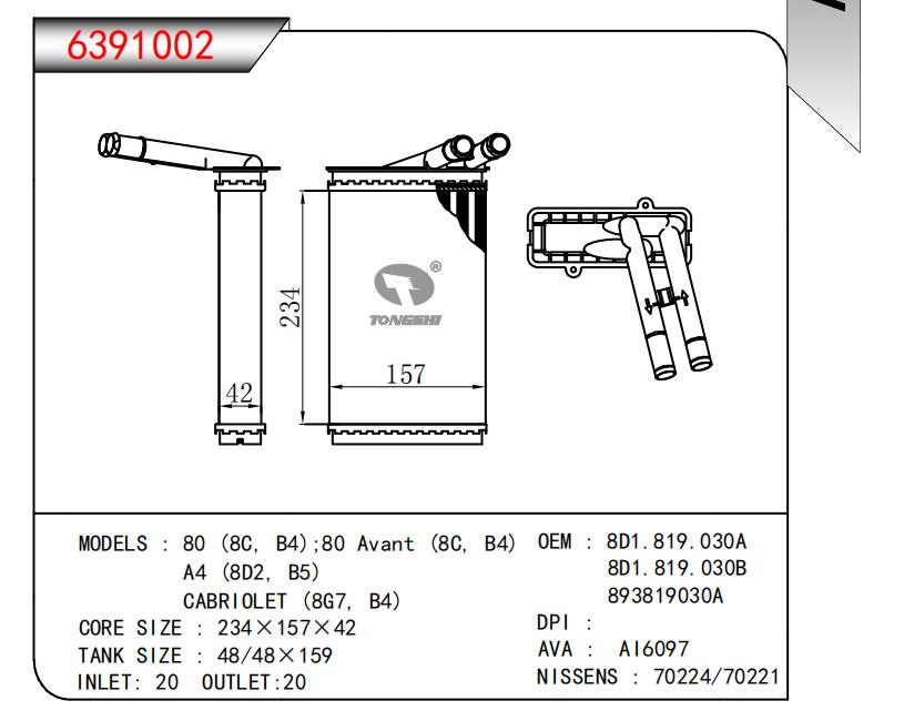 適用于80 (8C,B4);80 Avant (8C,B) 0EMA4 (8D2,B5)/CABRIOLET (8G7,B4) OEM:8D1.819.030A,8D1.819.030B,893819030A