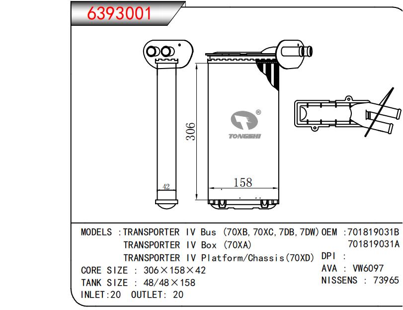 適用于TRANSPORTER IV Bus (70XB,70XC,7DB,7DW)TRANSPORTER IV Box (70XA)TRANSPORTER IV Platform/Chassis(70XD) OEM:701819031B,701819031A