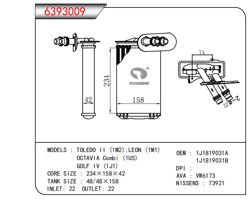 適用于TOLEDO II (1M2):LEON (1M1)OCTAVIA Combi (1U5)GOLF IV (1J1)