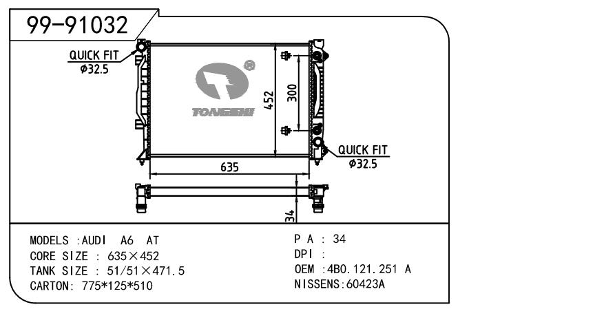 適用于AUDI 奧迪 4BA OEM:4B0.121.251A/4B0.121.251AH/4B0.121.251AK/4B0.121.251N/4B0.121.251S/4B0.121.251A