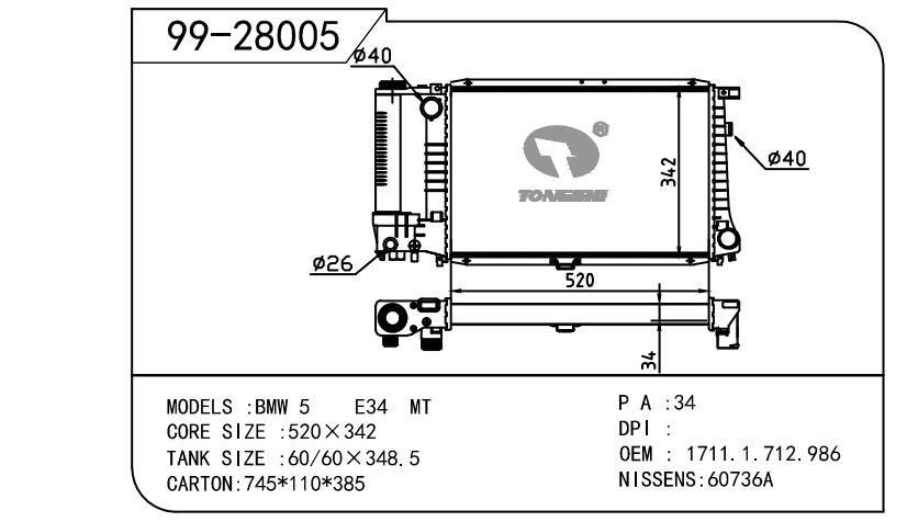 適用于BMW寶馬 寶馬 5系(E39) OEM:1.712.986/1.719.308/1.723.941/1711.1.712.986/1711.1.719.308/1711.1.723.941/1711.1.737.760/1711.1.712.992