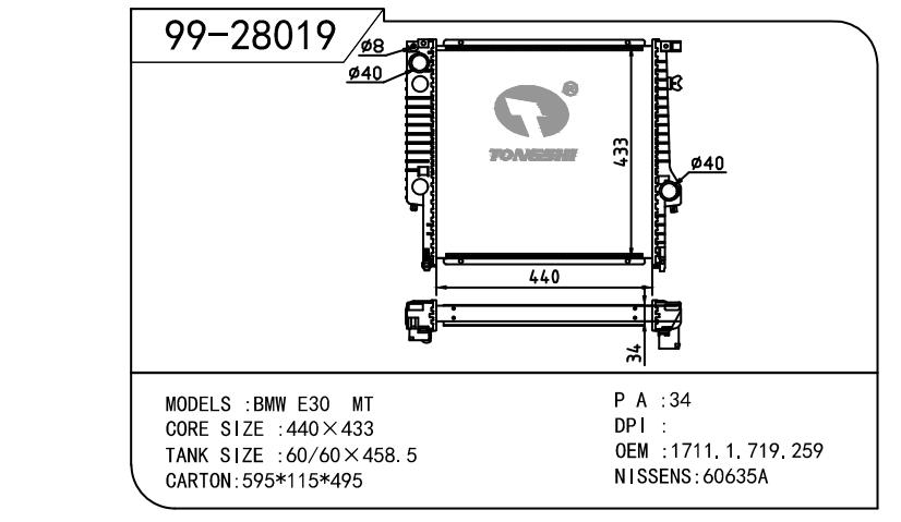 適用于寶馬 E30 320 i 82-93 AT散熱器OEM:1723 825/1719 261
