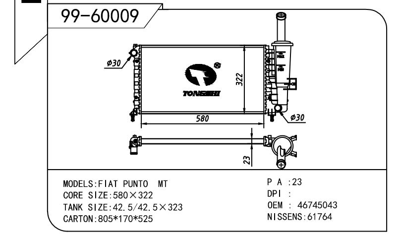 適用于奇瑞瑞虎(新款) MT散熱器 OEM : F1301000B1