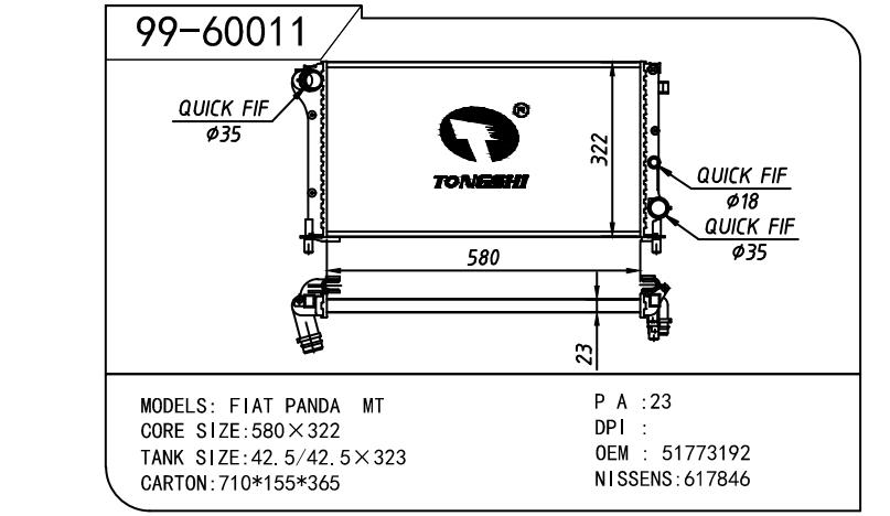 適用于奇瑞瑞虎(新款) MT散熱器 OEM : F1301000B1